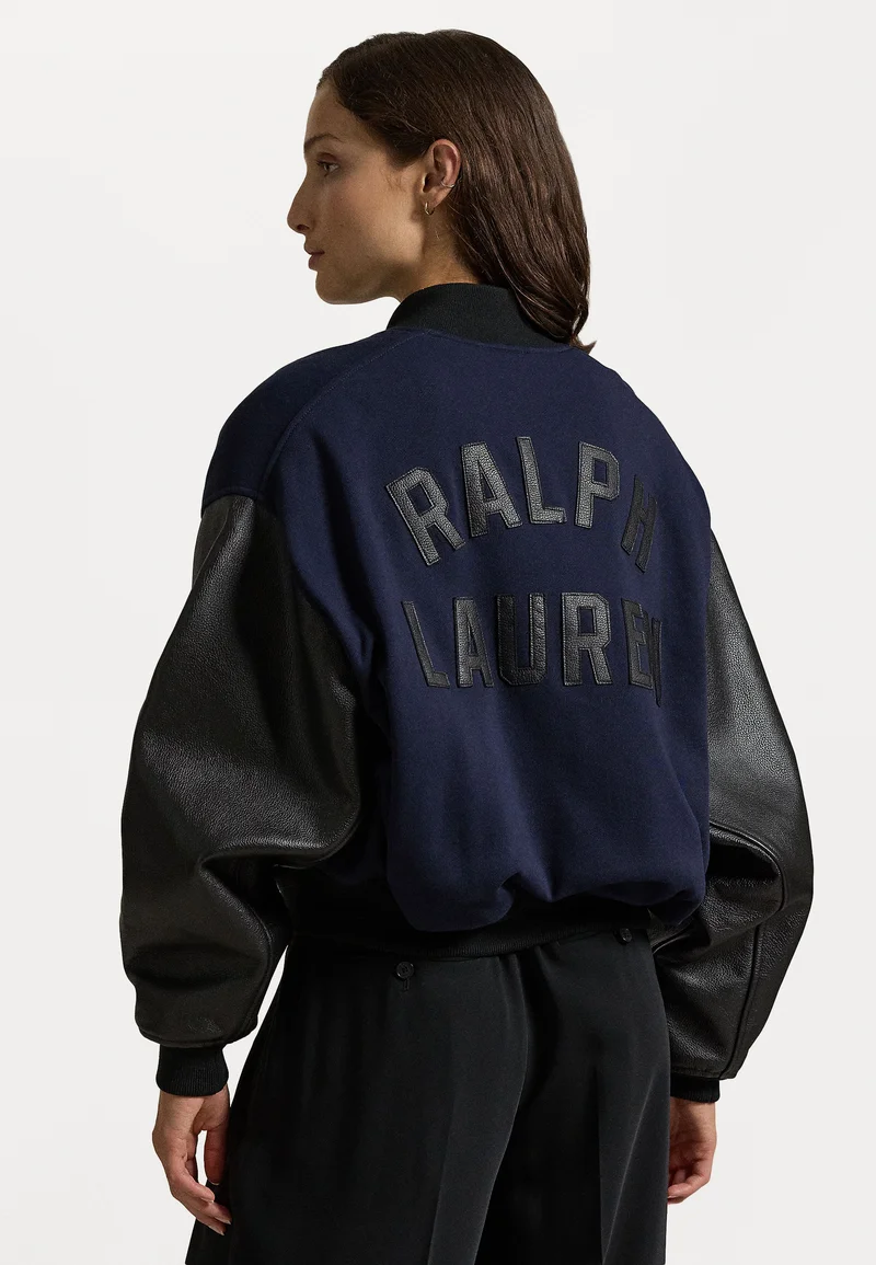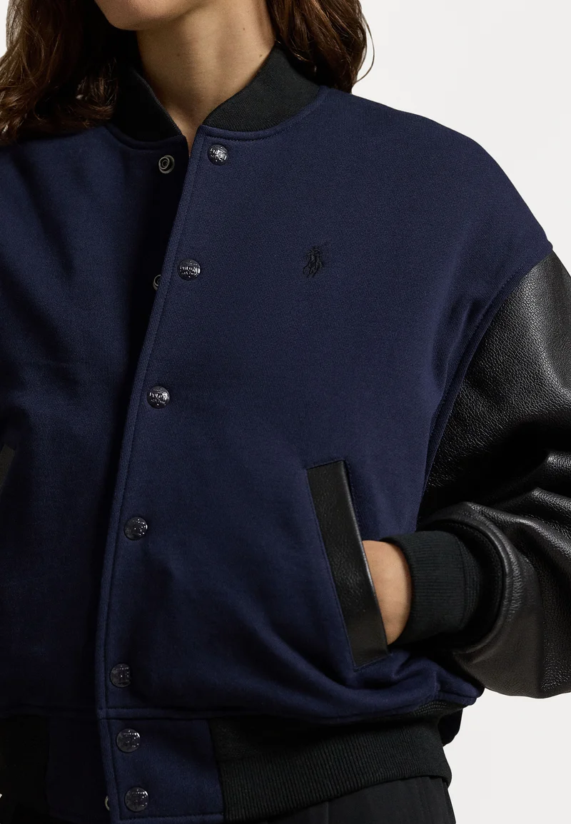 authentic quality Polo Ralph Lauren FLEECE LEATHER BOMBER JACKET – Zip-up sweatshirt ink/black Clothing Jackets & Blazers Bomber Jackets