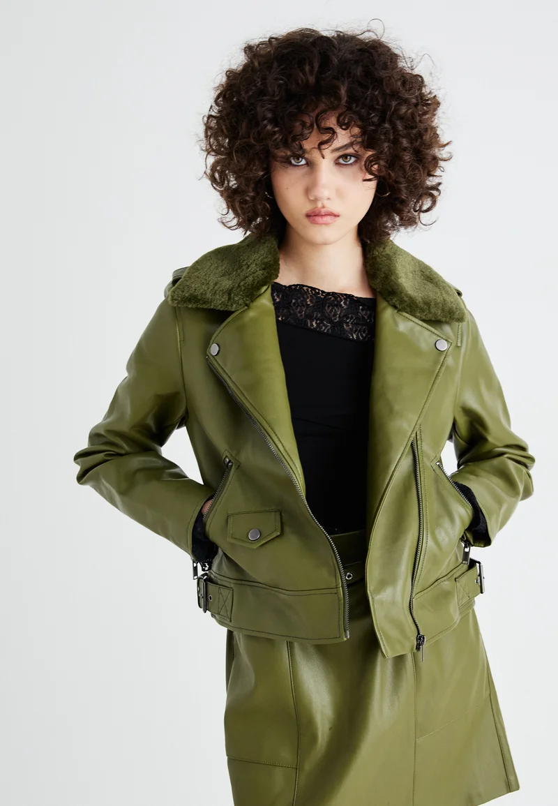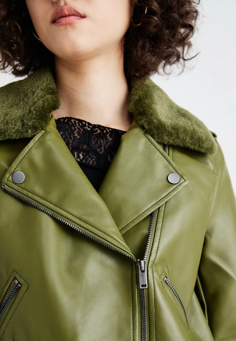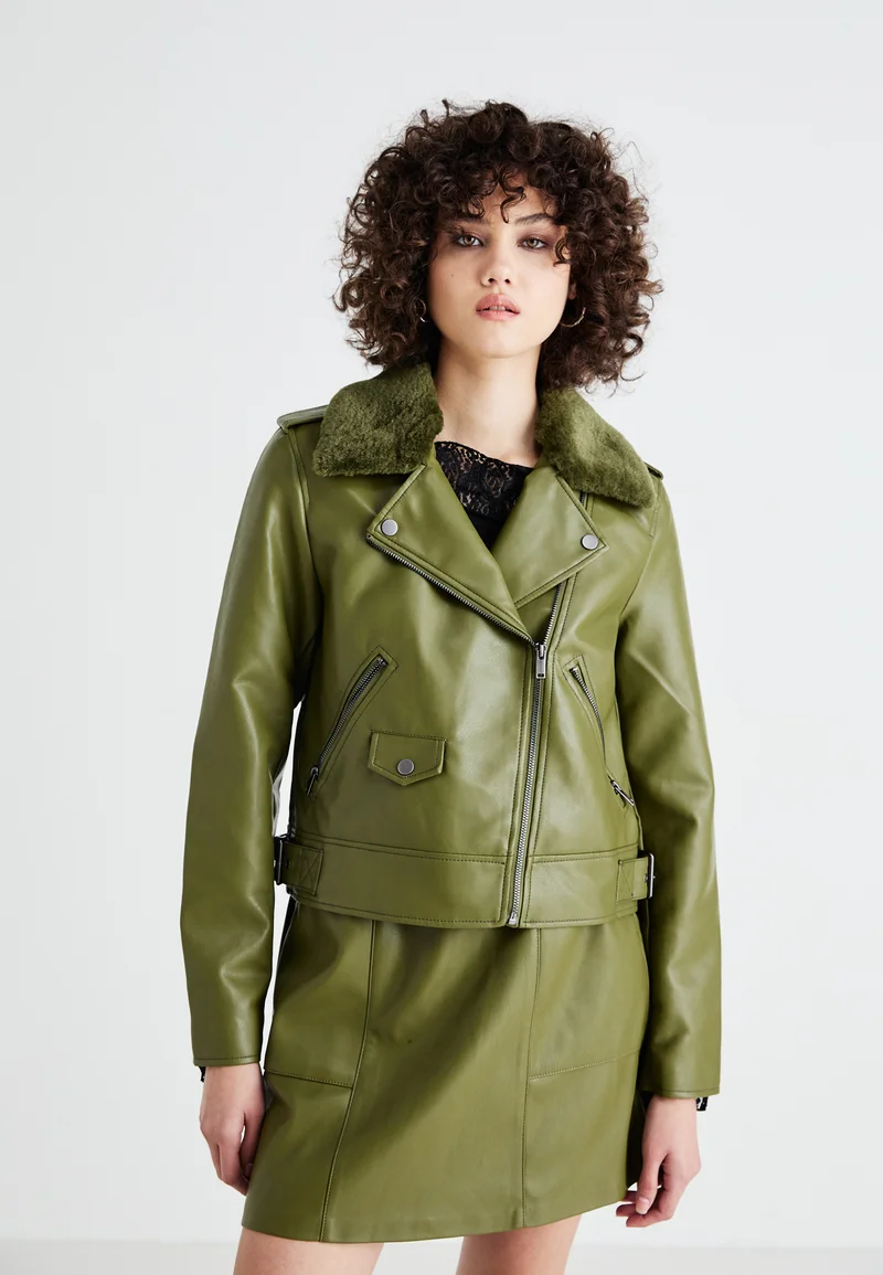 best-loved ONLY ONLVILHELMA BIKER – Faux leather jacket winter moss Clothing Jackets & Blazers Bomber Jackets