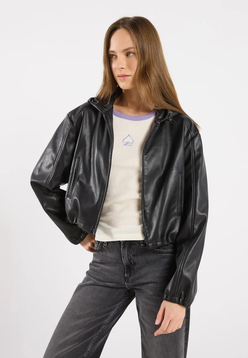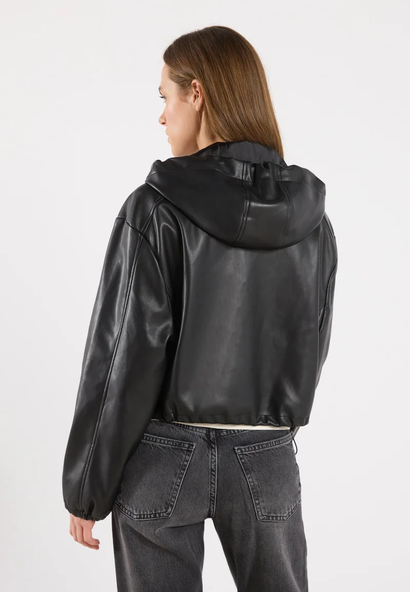 free delivery Even&Odd Faux leather jacket – black Clothing Jackets & Blazers Bomber Jackets