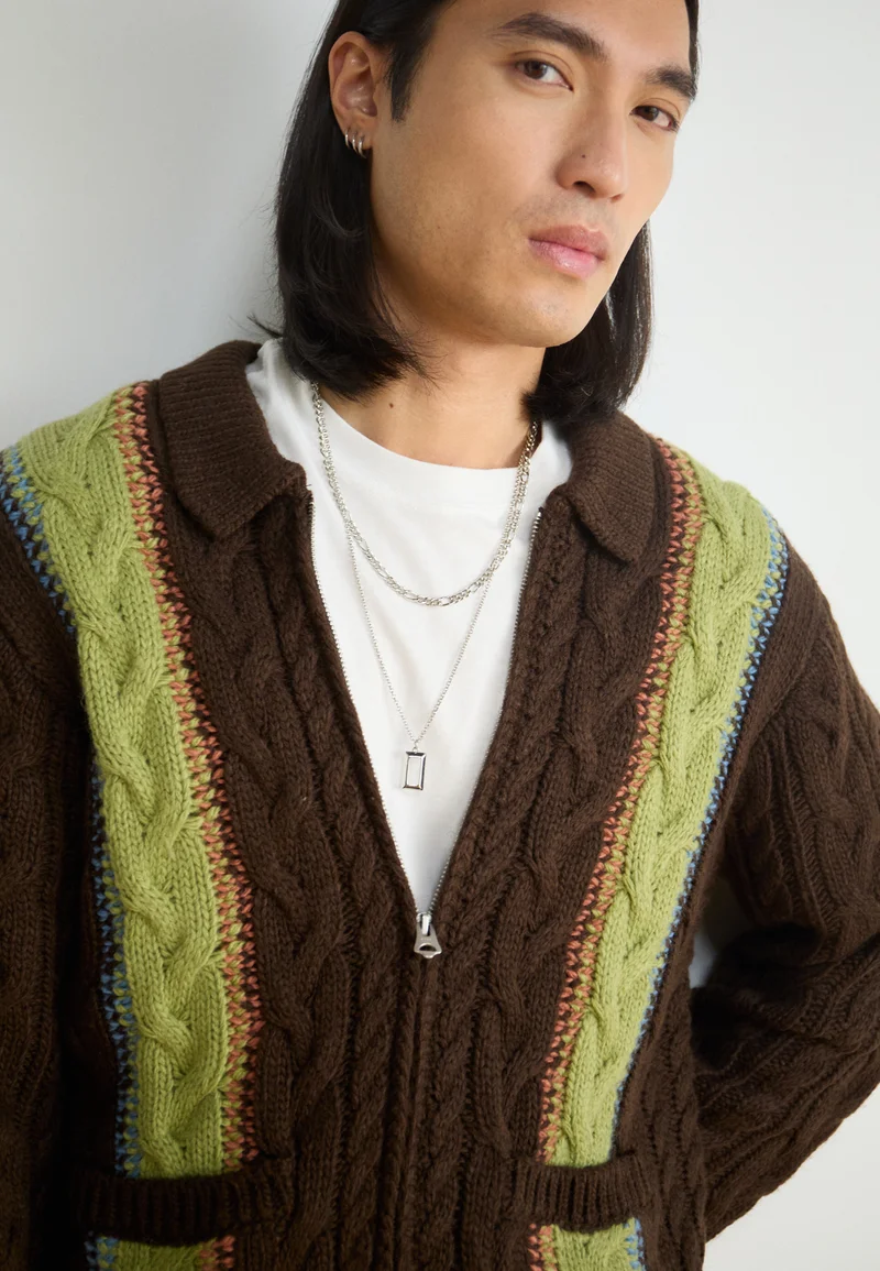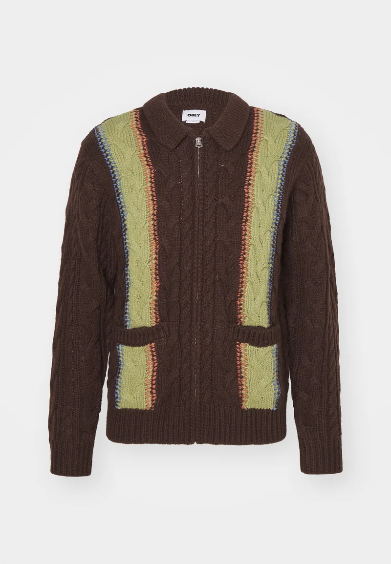 Low Price Guarantee Obey Clothing EZRA ZIP UP CARDIGAN – Cardigan dark brown/multi Streetwear Sale Streetwear Clothing Swimwear Cardigans