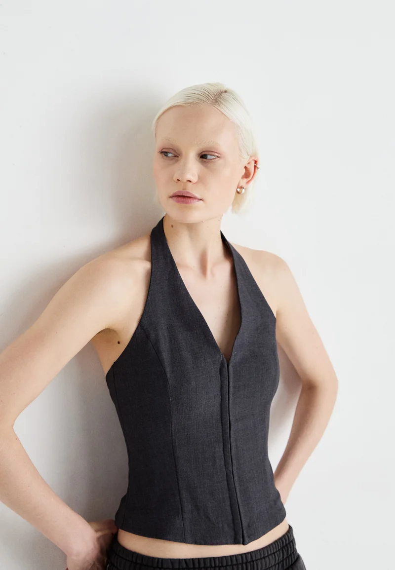 luxuriant in design Weekday NADJA HALTERNECK – Top grey melange Clothing Shirts & Blouses Blouses