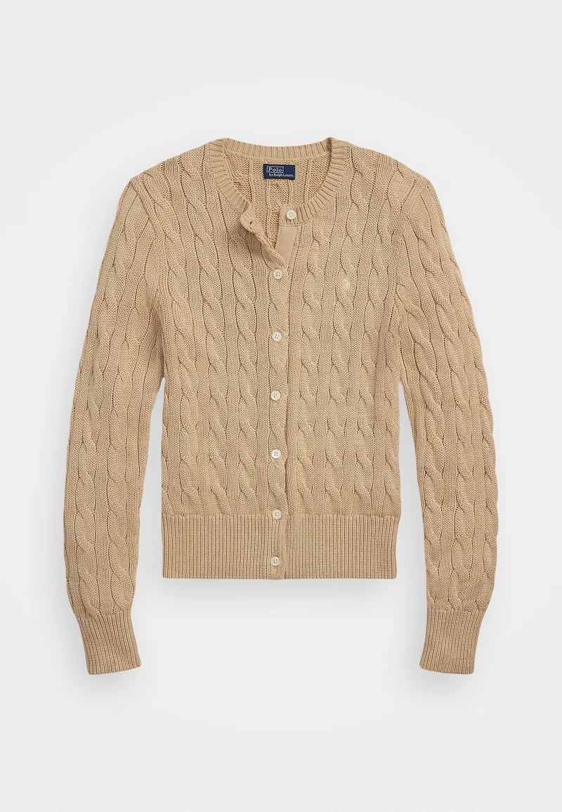 Online Here Polo Ralph Lauren CABLE KNIT COTTON CREWNECK CARDIGAN – Cardigan light saddle heather Clothing Knitwear & Cardigans Cardigans