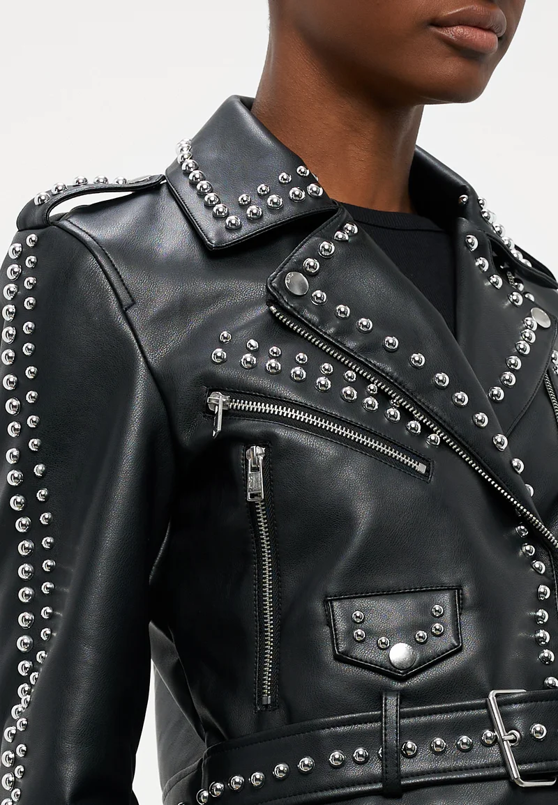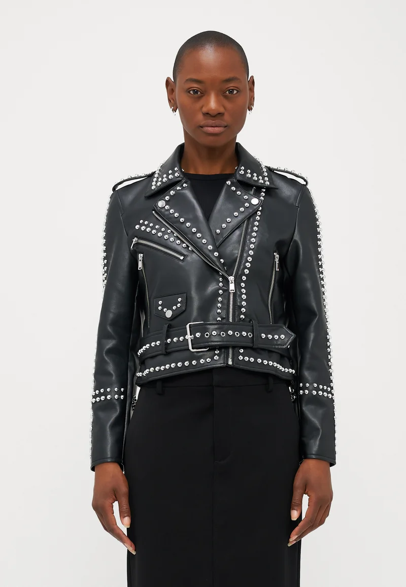 outlet store sale ONLY Petite ONLSANDRA STUD BIKER – Faux leather jacket black Clothing Jackets & Blazers Bomber Jackets