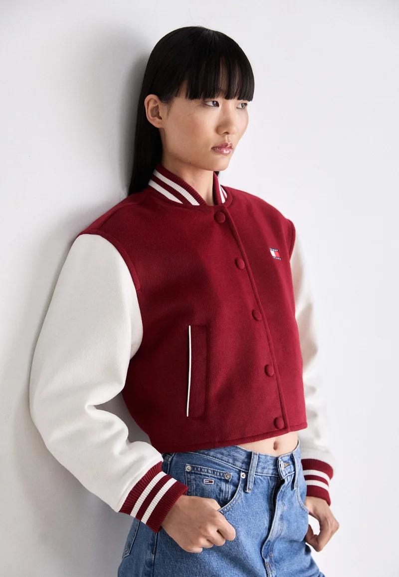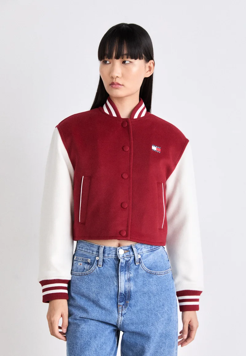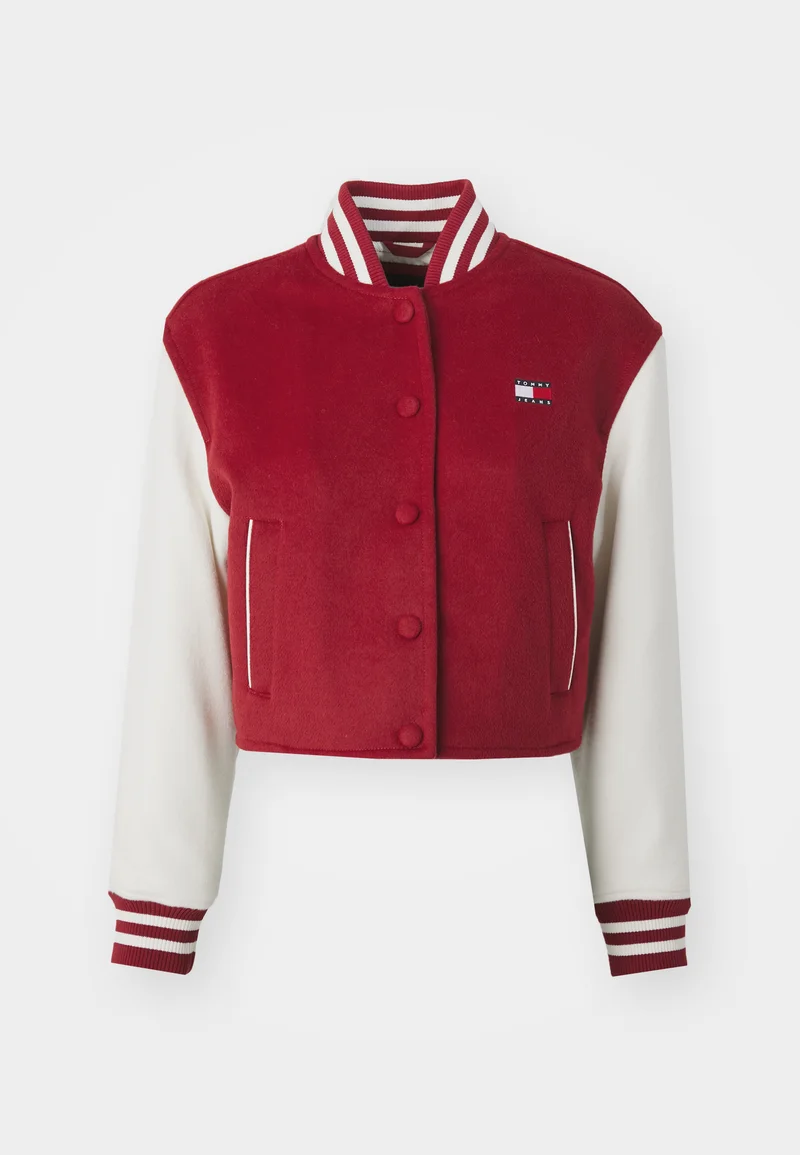 pretty and colorful Tommy Jeans VARSITY – Bomber Jacket regatta red Clothing Jackets & Blazers Bomber Jackets