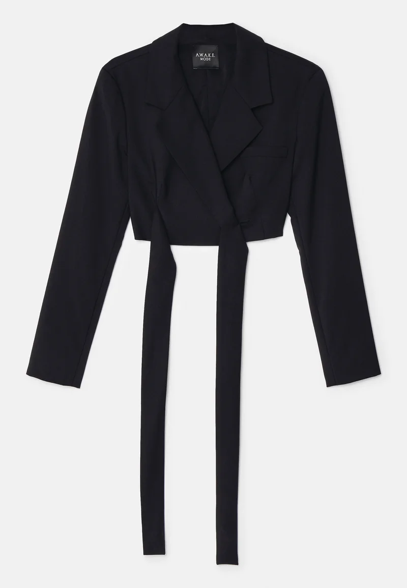 retail prices A.W.A.K.E. MODE CROPPED WRAP AROUND WITH TIES – Blazer black Clothing Jackets & Blazers Bomber Jackets