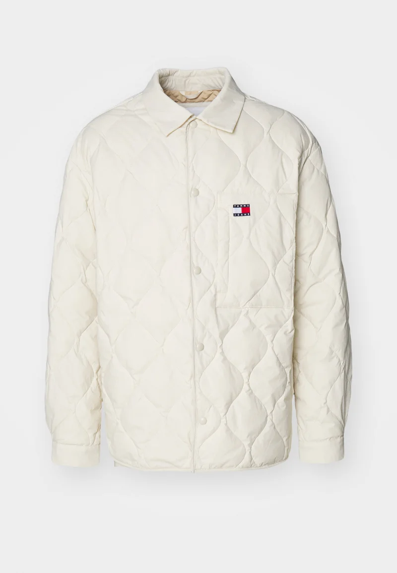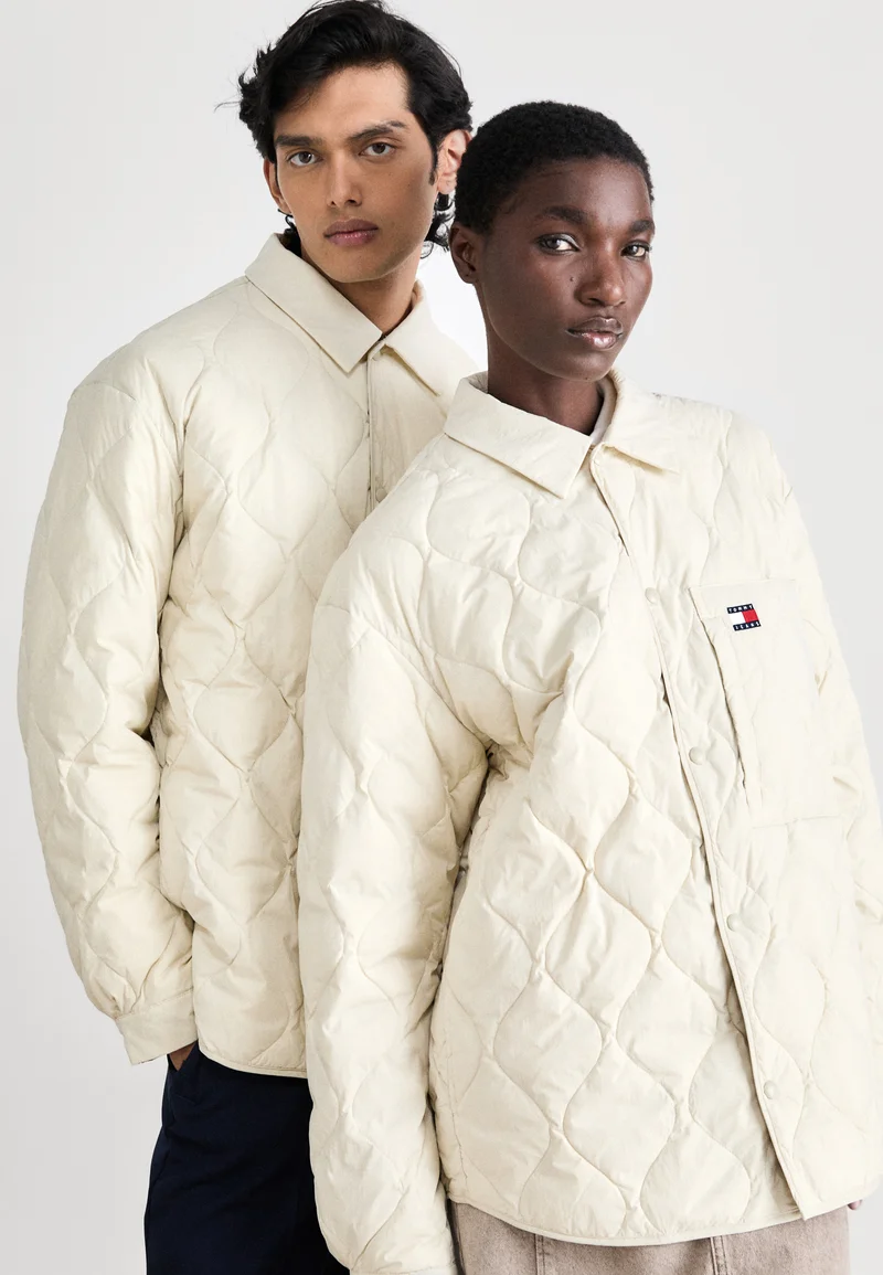 UK Factory Outlet Tommy Jeans SHACKET UNISEX – Down jacket newsprint Clothing Jackets & Blazers Bomber Jackets